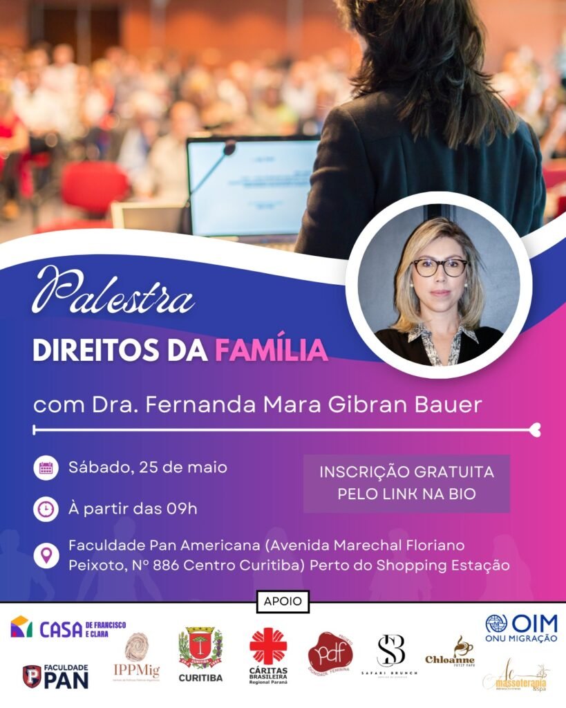 Neste evento teremos a palestra sobre Direitos da Família, com a Drª Fernanda Mara Gibran Bauer.